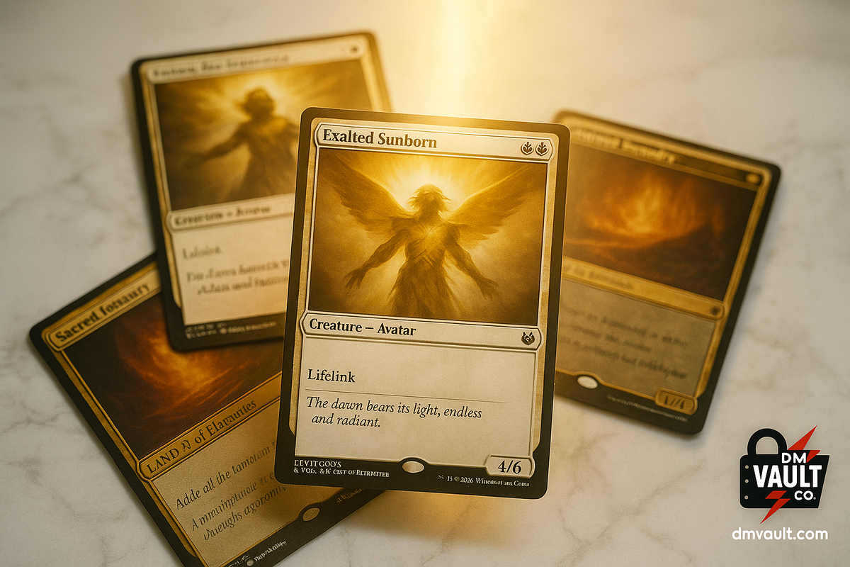 Edge of Eternities is live in the Vault. Mythics, shock lands, foils, and ready-to-play 4× bundles — all with free tracked shipping from DM Vault Co.